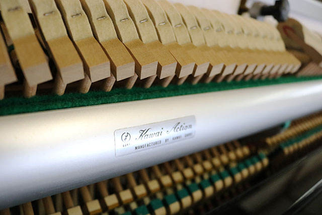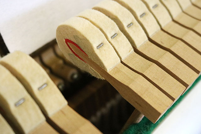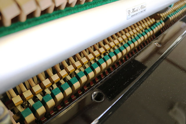 全てのハンマーが2重になっているオールアンダーフェルト仕様です。また、天板を少し開けて音を前面に響かせるストッパーもついています。