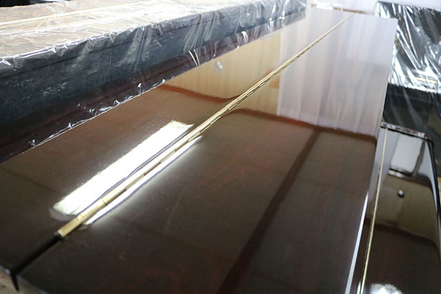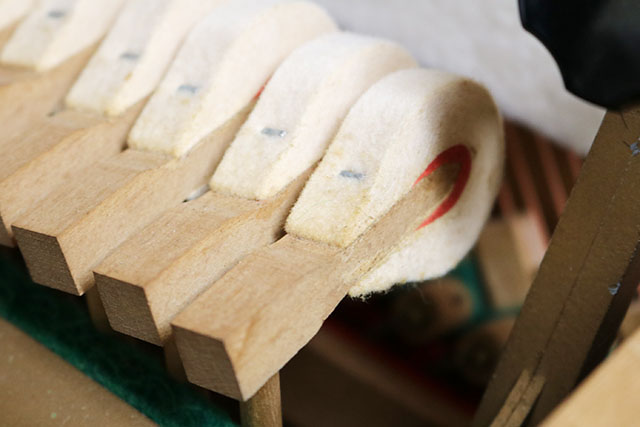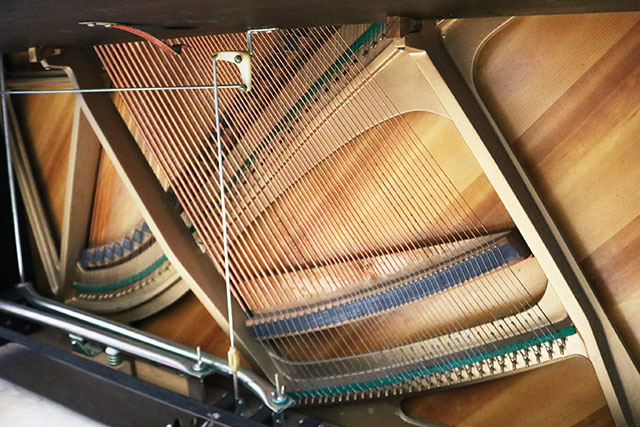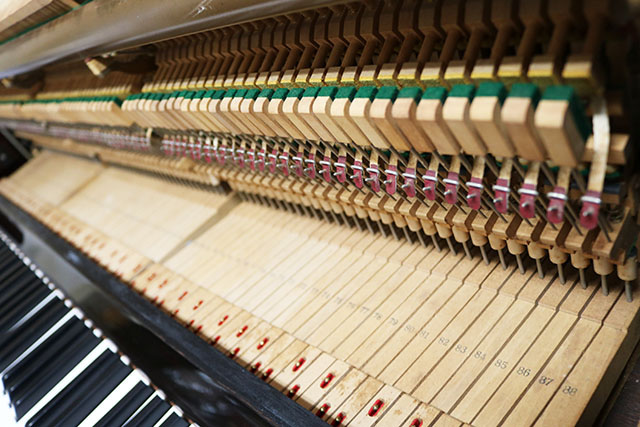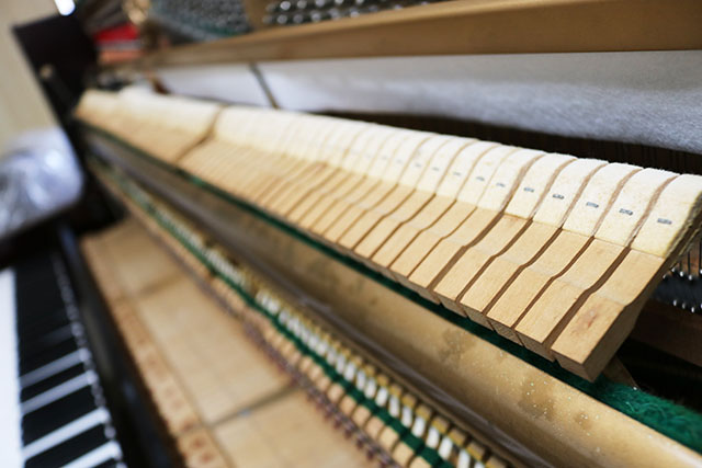 高さは圧迫感のない高さ121cm、アンダーフェルト入りハンマーのピアノです。